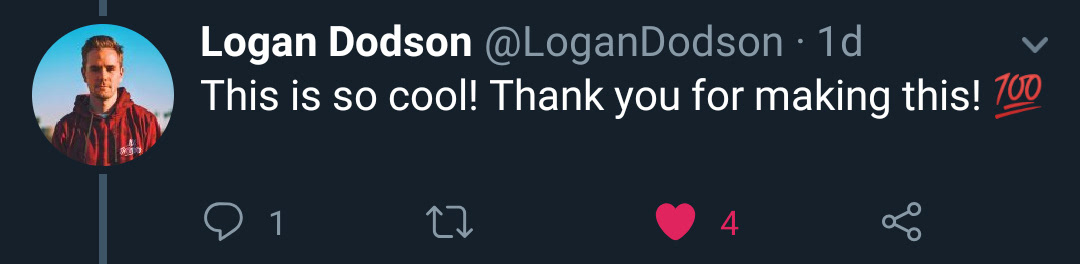 "This is so cool! Thank you so much for making this! 💯" -LoganDodson