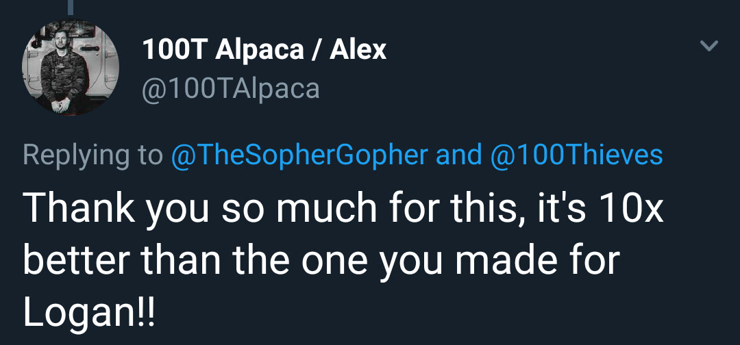 "Thank you so much for this, it's 10x better than the one you made for Logan!!!" - 100TAlpaca